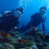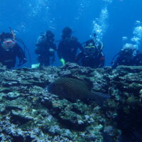 天気:⛅ 気温℃:32~28 水温℃:29~28 透明度M:25~ 風:南 波:1.0 ここ数日冷たい水が流れ込み、透明度もよく気持ちよい♪ 心配していた雨もなくS&I御一行様、あっという間に最終日 これは …