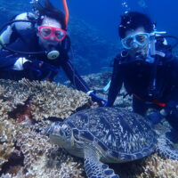 フレンドリーなアオウミガメ