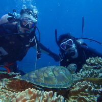 天気:⛅ 気温℃:32~27水温℃:29~28 透明度M:25~ 風:南 波:1.0 心配なしの海日和♪ 6本目の体験ダイビングのS様 余裕あって、上手い✌ サンゴ畑も泳ぎ、米原のサンゴ& …