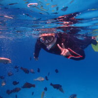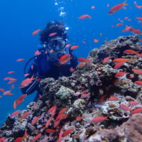 天気:⛅ 気温℃:31~27 水温℃:29~28 透明度M:20~ 風:東南東 波:3.0 風はまだありますが青空広がり秋晴れ♪ N様、ダイビングに挑戦! マスククリアー、耳抜き練習しながら海の世界へ カク …