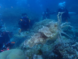 メスのコブシメをガッツリガードして他のオスを寄せ付けず