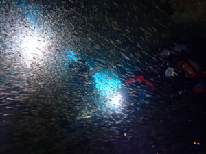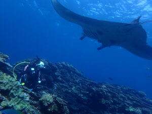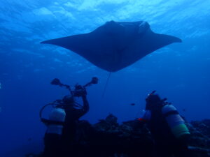 ダイバーの上を泳ぐマンタを見て次回はと!