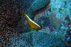 セジロクマノミはせっせと卵のお掃除
