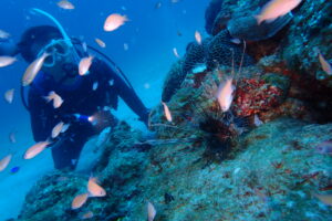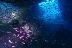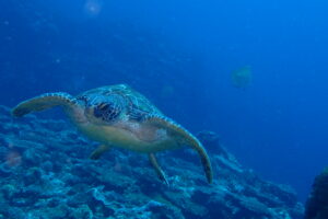 アオウミガメやツバメウオ、ヒレナガスズメダイ幼魚、セジロクマノミ、ハマクマノミなどなど