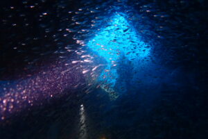 砂地にはハナヒゲウツボ幼魚、チンアナゴ、ジョーフィッシュ