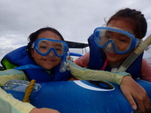 それでも子供!マンタの浮き輪に乗ったりも😂