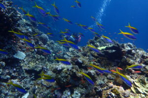 ネッタイスズメダイ、ウメイロモドキ若魚、キンギョハナダイ&アカネハナゴイの群れ