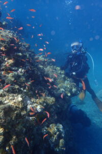 スズメダイ、ハナゴイの幼魚は鮮やか