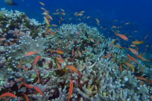 広がるサンゴにキンギョハナダイ&アカネハナゴイの群れ