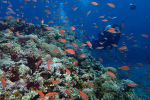 広がるサンゴ畑、キンギョハナダイ&スズメダイに