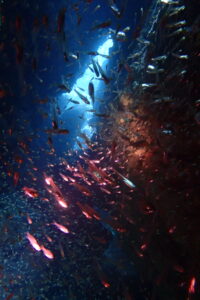 夏の楽しみ洞窟にはいっぱいのテンジクダイ♪
