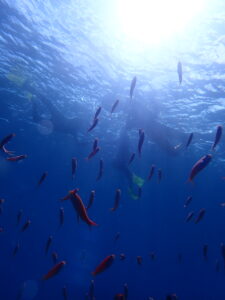 シュノーケリングチームもたくさんの魚と泳ぎ