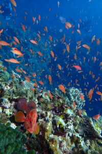 キンギョハナダイ&アカネハナゴイの群れ、透明度がいいからさらにキラキラ度アップ↑
