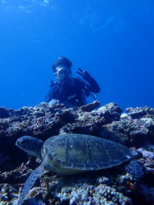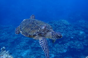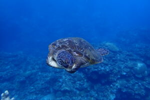 アオウミガメが住みやすい環境のようで小さめのカメが多いポイント