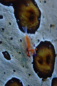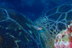 1cmのカクレエビ、カメの背の上をカエルウオ