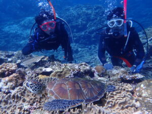 魚群に透明度に感動され、アオウミガメも近く出会えましたね🥰