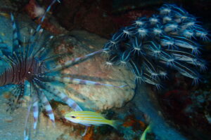 漁礁にはハナミノカサゴ幼魚・タテジマキンチャクダイ幼魚・ゴンズイなどなど