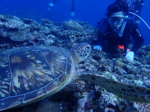 カラフルな魚、アオウミガメ、そしてマンタにも会えましたね✌