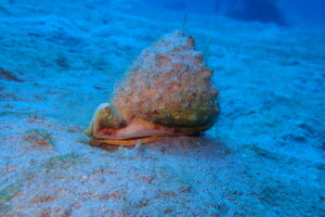 トウカンムリ貝が砂地を移動中
