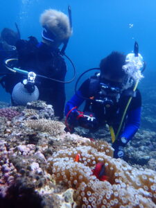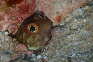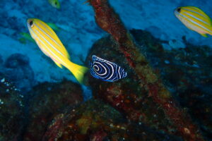砂地のポイントではジョーフィッシュ、チンアナゴ、タテジマキンチャクダイ幼魚