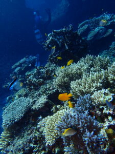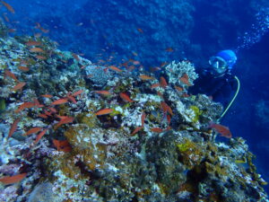 多種多様なサンゴ、キンギョハナダイ、ネッタイスズメダイ