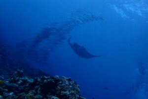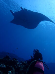 昨日よりうねりがあり、マンタはすでに根でホバーリング😍