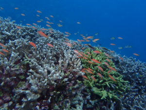 多種のサンゴに、スズメダイ、テンジクダイなど
