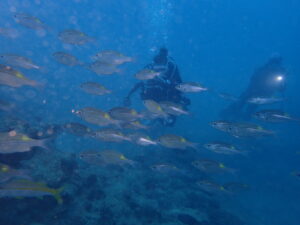 天気:☁気温℃:22~20 水温℃:27~25 透明度M:15~ 風:北東 波:4.0