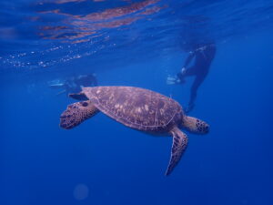 アオウミガメがタイミングよく水面に上がってきてくれた~~~😆