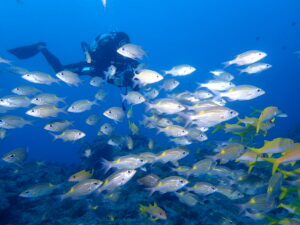 天気:🌥 気温℃:23~16 水温℃:24~23 透明度M:25~ 風:北 波:2.0