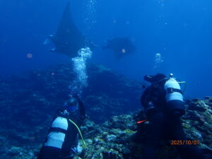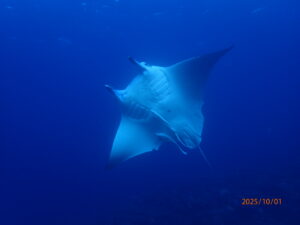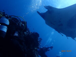 カマスの群れも現れ、うれしいのですがマンタの前でトルネード💦