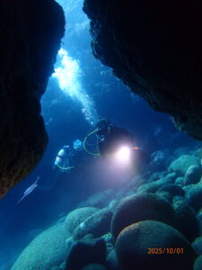 水温は高めですが、洞窟の中のテンジクダイはいなくなりました。